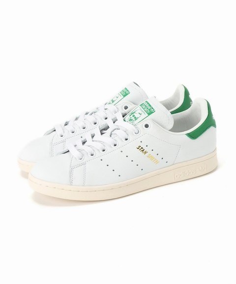 スニーカーの王道「adidas STAN SMITH」は、あえて定番のグリーンカラーをチョイスするのが良し。クリーンなイメージのホワイトレザーに、鮮やかなロゴのアクセントが響きます。