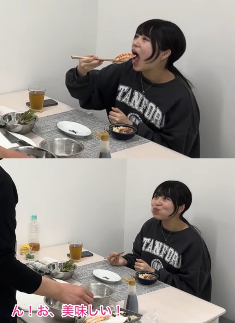 ともえさんのお気に入りはアナゴだそうです。煮詰め醤油もお手製という本格さに驚きながらも、「おいしい」と笑顔で感動を伝えていました。