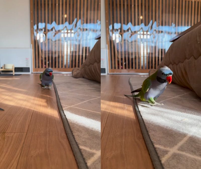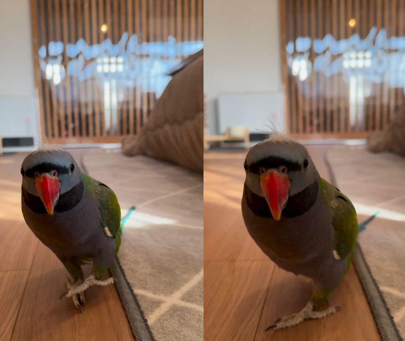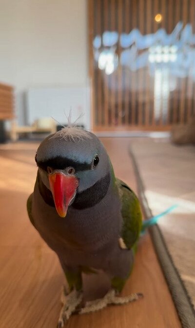 2. 【土俵入りする関取インコ】頭の上になんかある。まさかの大銀杏?