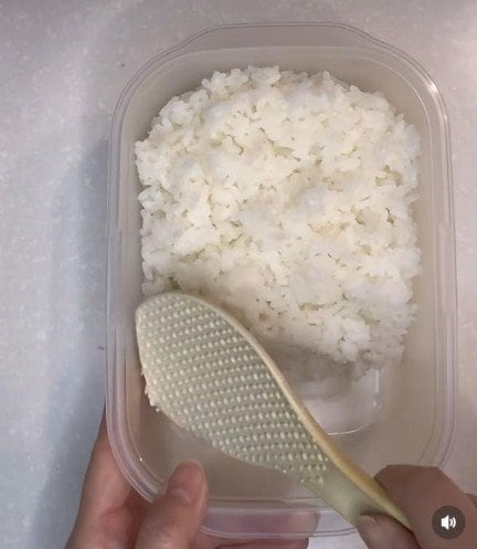 まずは ご飯を入れて、しゃもじで形を作っていきます。この作業が土台となるので、しっかりやりたいですね。