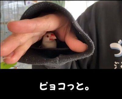 こちらは、別の文鳥さんですが、袖の正面から見ると、これまためちゃくちゃかわいい!