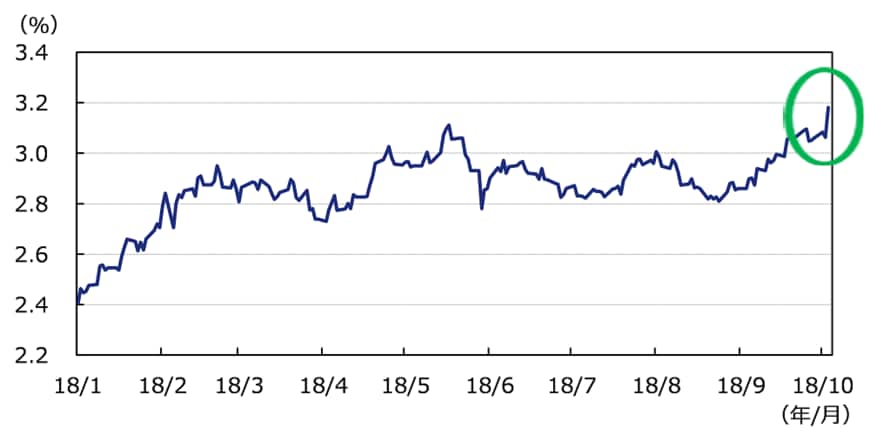 10月3日の米10年国債利回り(以下、長期金利)は、大きく上昇し、一時7年3カ月ぶりの高水準まで、上昇しました(図表1ご参照)。