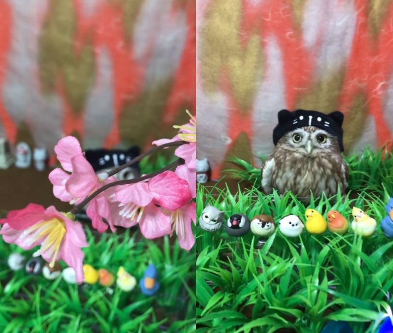 1. 【春を待つフクロウ】お花の中からこんにちわ!コキンメフクロウの「ぷくちゃん」
