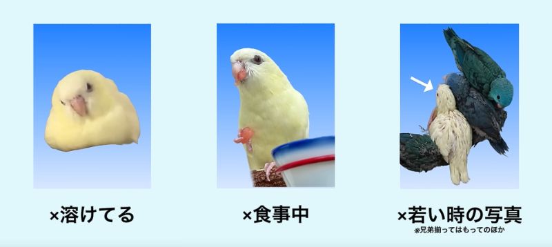 2. 【鳥さんの証明写真ガイドライン】NG例の一押しは「溶けてる」だそうです