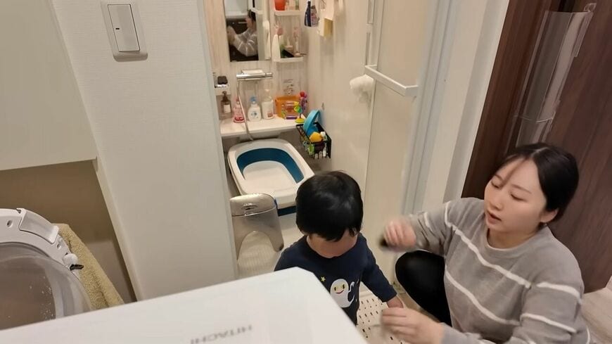 そのあとは休む間もなくお風呂タイム。みゆかさんは手際よくハルくんの服を脱がし、一緒に入って歌を歌っていました。