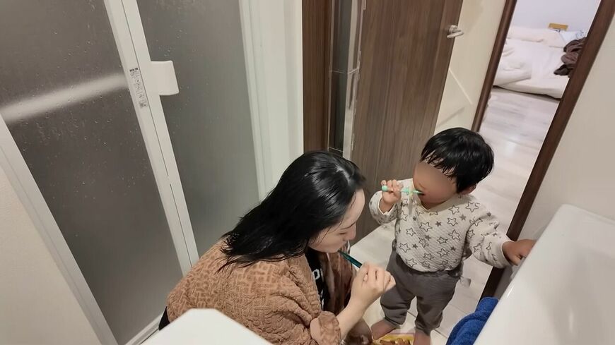 風呂上りは一人で静かに遊んでくれているハルくん。みゆかさんは「いつもあんなおりこうさんに遊んでくれないんだけど…不思議です」と苦笑いです。そのあとに2人で歯磨きをすませ、眠りにつきました。
