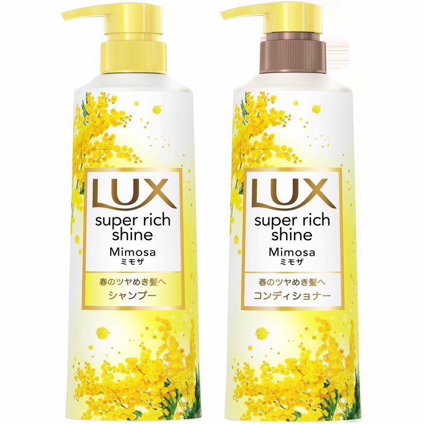 「スーパーリッチシャイン」はLUXのベースとなる商品で、ダメージやパサつき、うねり、ツヤの減少など、さまざまな髪のお悩みにアプローチ。ミモザシリーズは、贅沢でリラックスできるバスタイムを演出する“優しく爽やかな香り”です。