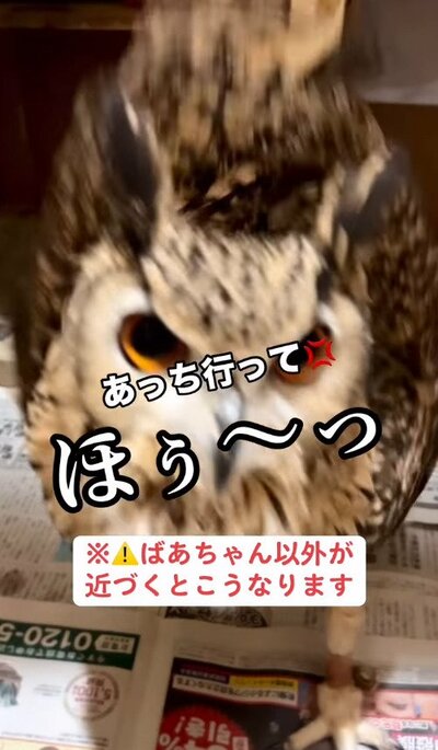 1. 【激おこフクロウ】ベンガルワシミミズクのラテちゃん、ばあちゃん以外の人が縄張りに近づくと激おこの季節