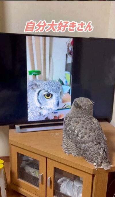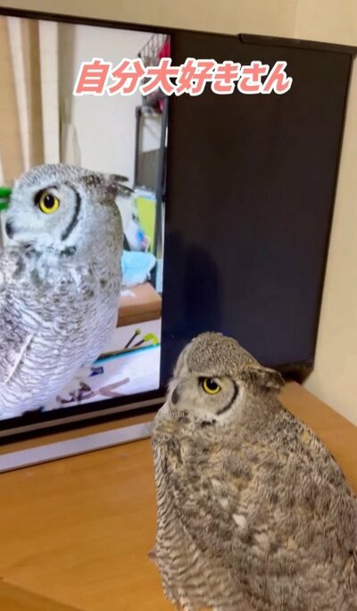 2. 【自分大好きフクロウ】思わずシンクロ!そして見つめ合う2匹...