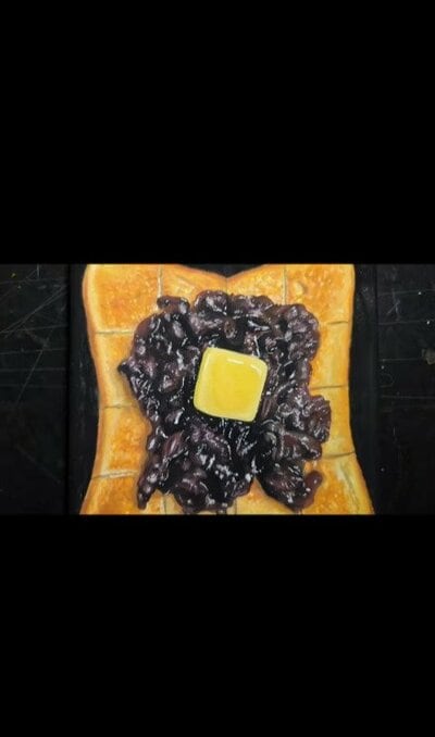 トーストのバターのしょっぱさと、小倉あんの甘さが織りなすハーモニーは、まさに至高の味わい。目で味わえるなんて、なんという贅沢でしょう...。