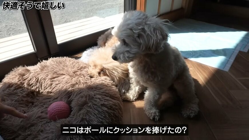フローリングが滑りにくくなり、わんちゃんも居心地の良い空間になりました。2匹にとってすでにお気に入りの日向ぼっこの場所になっているようです。