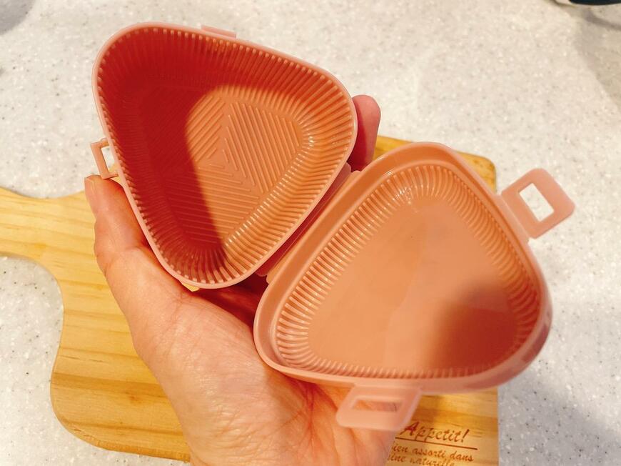 「本当にこれでおにぎりができるのか…?」とドキドキしながらケースを開けてみると…とってもきれいな三角形のおにぎりができていました!