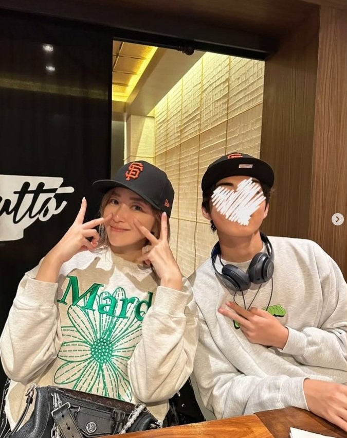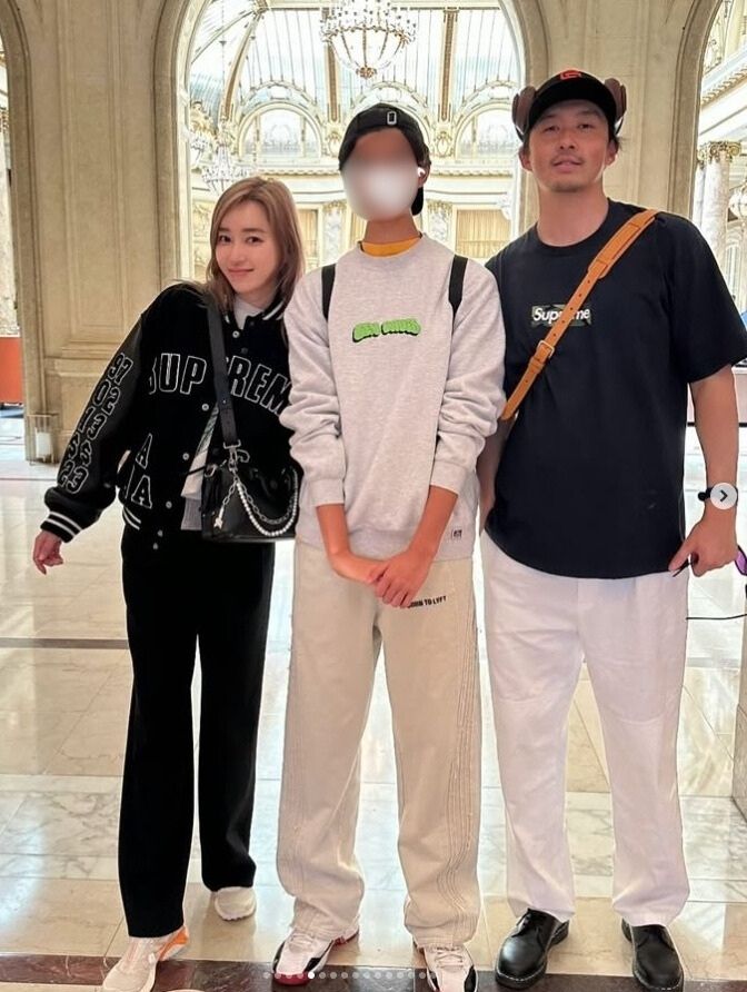 翔平さんも交えて3ショット。188センチの翔平さん、170センチの仁香さんと息子さん、スタイル抜群ファミリーすぎますね!