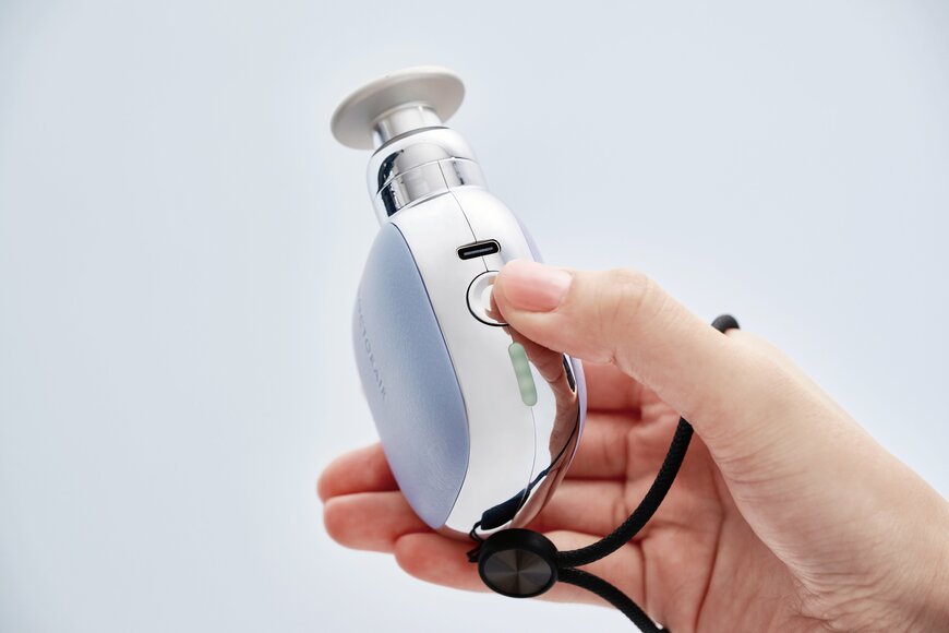 「エクサガン ポケット」の特徴は、コンパクトなサイズ感と充実した機能。手のひらにすっぽり収まるサイズで、重さはりんごよりも軽いほど。“シリーズ最小&最軽量”を実現しています。