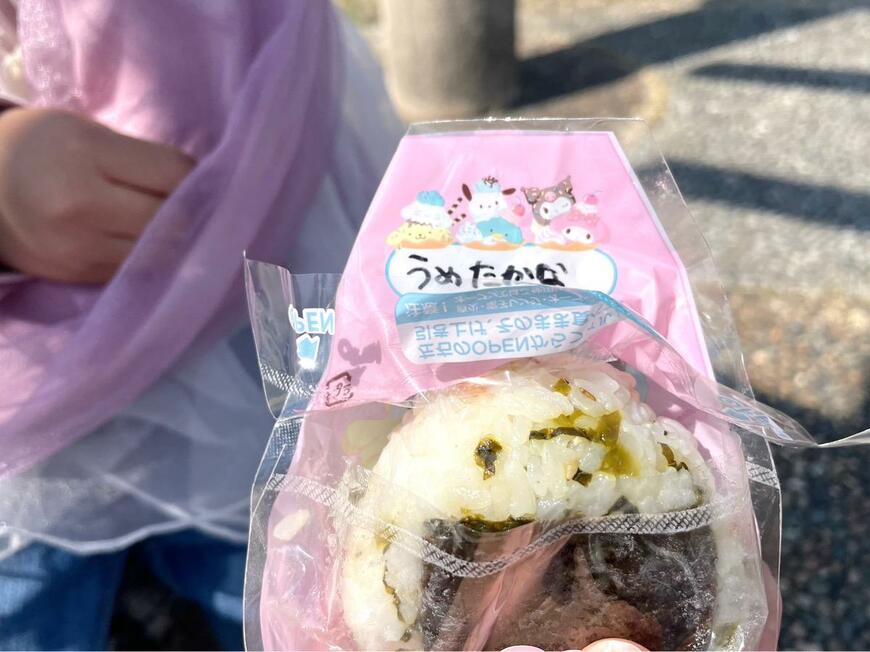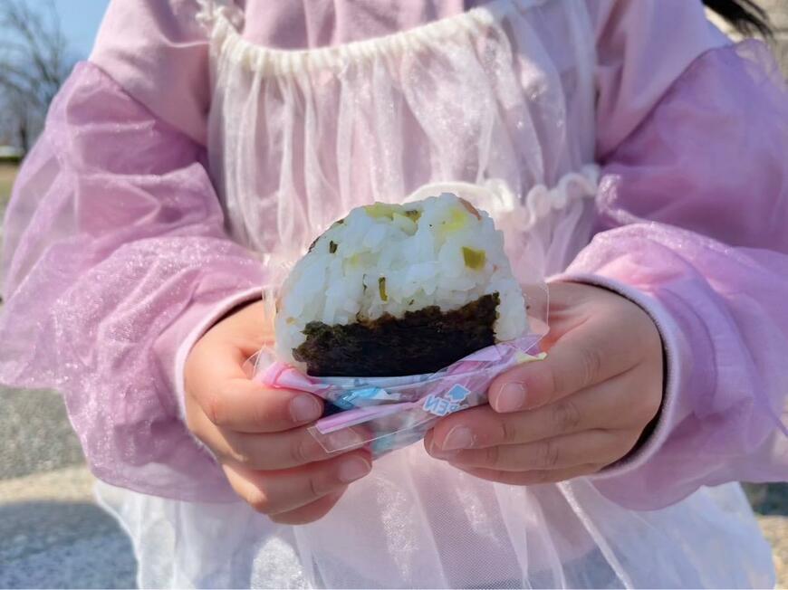 開いたら、デコパック下部分を持っておにぎりを食べます。直接おにぎりに手が触れないので衛生的!ピクニックなどの屋外で食べるときも安心でしょう。