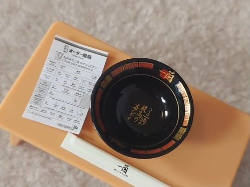 ちゃぶ台に乗っていたラーメンのミニチュアなどはすべて床へ…。飼い主さんが最後に拾い上げた、空になったラーメンの器が、哀愁感たっぷりに映っていました。