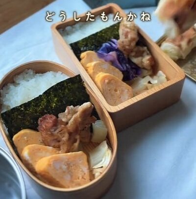 卵焼きや自家製から揚げを入れることで、ボリューム満点で食べ応えのあるお弁当に!