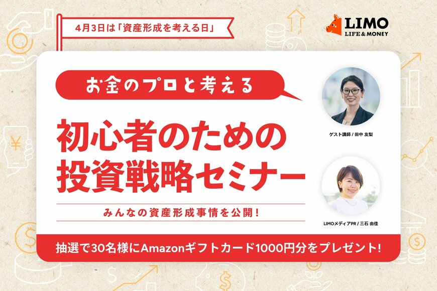 4月3日は「資産形成を考える日」として日本記念日協会により認定された記念日です。くらしとお金の経済メディア「LIMO」は、同日に合わせて「みんなの資産形成事情を公開!お金のプロと考える初心者のための投資戦略セミナー」を開催しました。