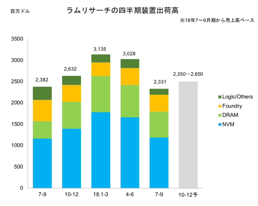 半導体製造装置大手の米ラムリサーチは、2018年7~9月期決算発表にあわせて、19年上期(1~6月)売上高が18年下期比で増加する見通しだと明らかにした。18年10~12月期も前四半期比で増収のガイダンスを示しており、18年7~9月期が半導体製造装置市場にとって、ボトムであることを強調した。