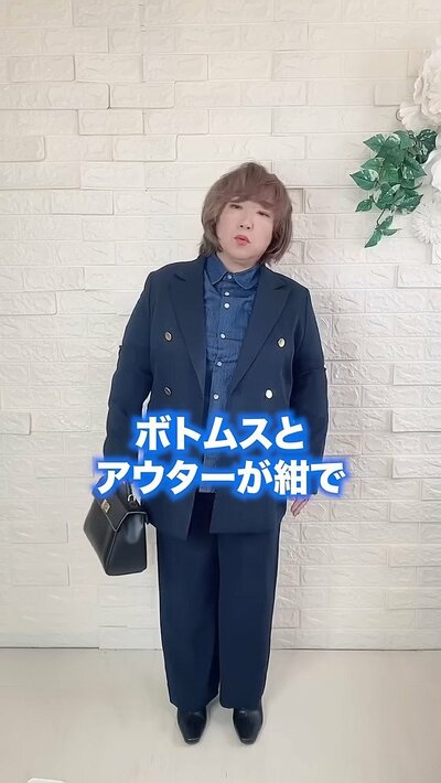 3つ目は青やネイビー、黒などの同系色合わせ。基本的に青みカラーのデニムに、ネイビーや黒を合わせると血色感がなくなってしまいます。
