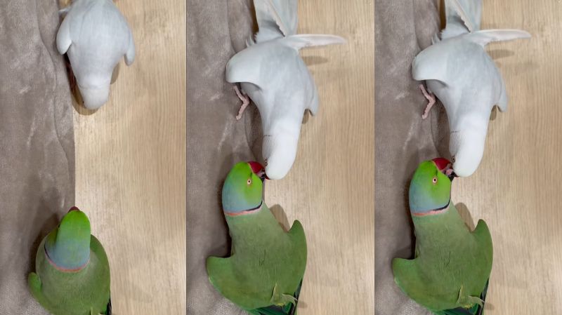 2. 【独特なコミュニケーションをとるインコ達】顔を近づけて「ペロペロ」?!?!