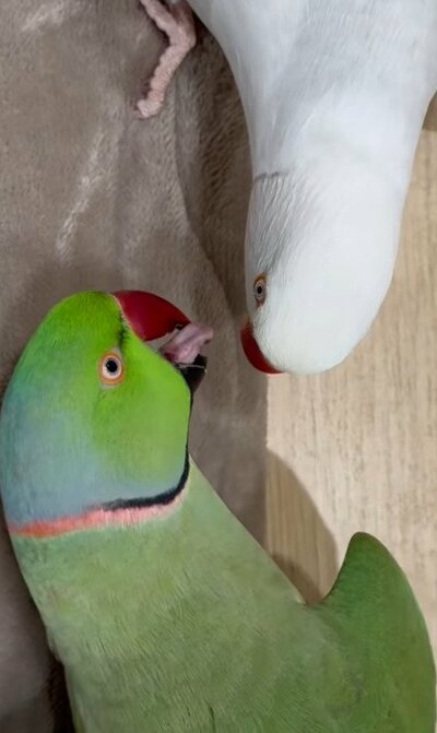3. 【独特なコミュニケーションをとるインコ達】なんども「熱烈キッス」2匹の愛は止まりません