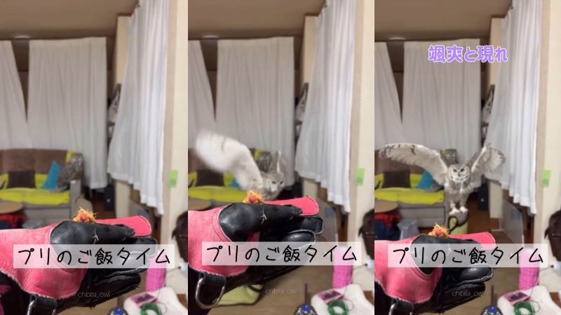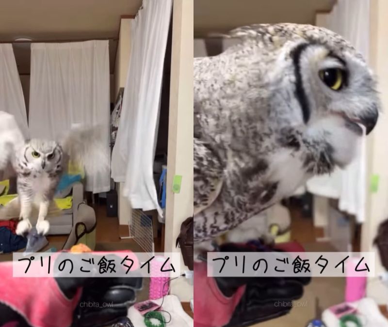画面左から颯爽と登場したのは、同居フクロウのビッケちゃん。