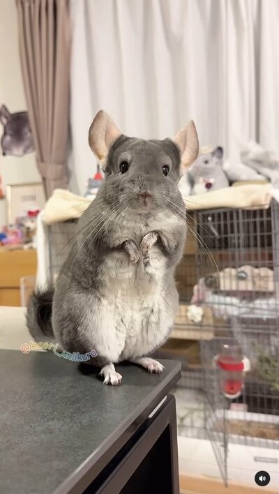 1. 【チンチラさんの伸縮性がすごい】いくらちゃんフリーズからのびよーん!のびのび動画がかわいすぎます
