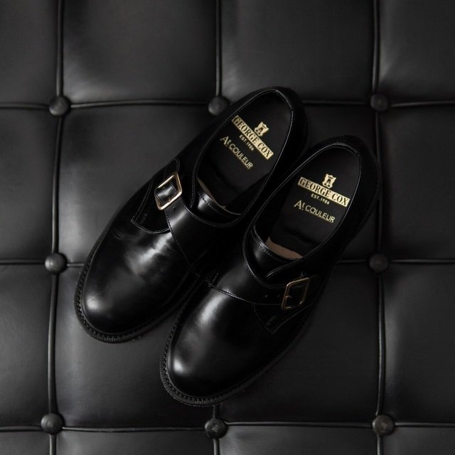 1906年・英国ノーザンプトンで生まれたシューズメーカー『GEORGE COX』。こちらのEDIFICE別注モデルは、定番では展開されていないシングルモンク型の一足。アッパーに用いた光沢のあるガラスレザーにより、上品な見た目へと仕上がっています。