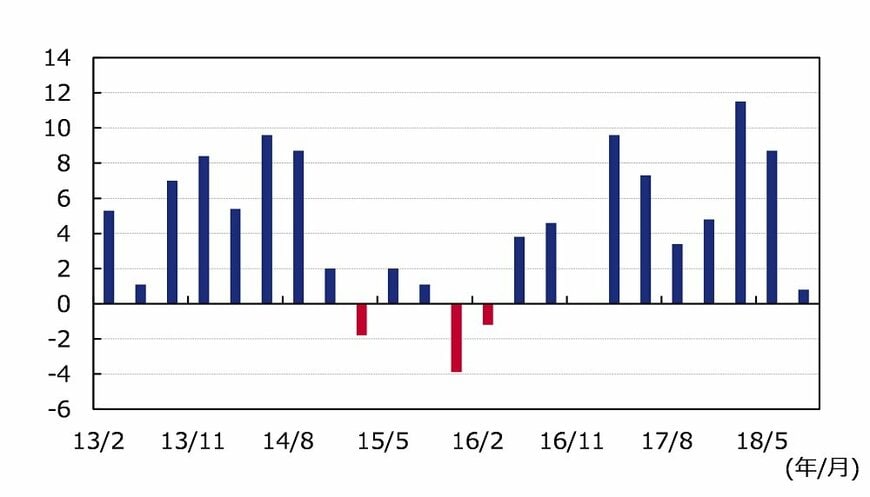 たとえば、3月に制裁措置が発動された鉄鋼分野について、最近の動向をみてみましょう。10月24日に発表された世界の粗鋼生産量(9月)をみると、米国で前年比+9.0%と米国内での生産が増加しており、鉄鋼業という製造業が米国に回帰する兆しと考えることもできそうです(なお、将来はともかく、現状ではグローバルベースでも前年比+4.4%と堅調です)。したがって、米中貿易問題が米国の消費を抑制すると、一足とびに結論づけることはできないと考えています。