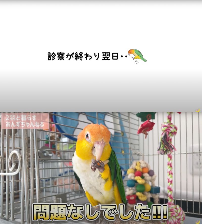 4. 【たぬき寝入りするインコ】診察結果は問題なし!安心しました