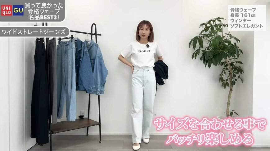 2. 【ユニクロ&GU本当に買ってよかった名品2選!骨格ウェーブ編】1つ目はユニクロ「ワイドストレートジーンズ」3990円!足長効果抜群!サイズ選びには要注意