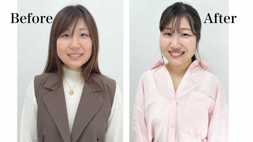 変身後の姿を見た相談者さんは、「すごい!思ってたのとちょっと違う!うれしいです、新しい自分を発見できました。『大人っぽさもあるけどかわいい』を実現してもらえて感動しました」と大喜びでした。