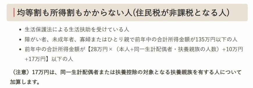 先述の通り、住民税が非課税となる所得要件は、自治体により違います。栃木県真岡市の例を見てみましょう。