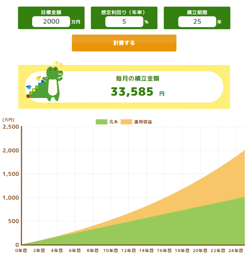 「25年で2000万円を用意する」という目標を決めたら、具体的にいくらの積立投資が必要になるのかを考える必要があります。