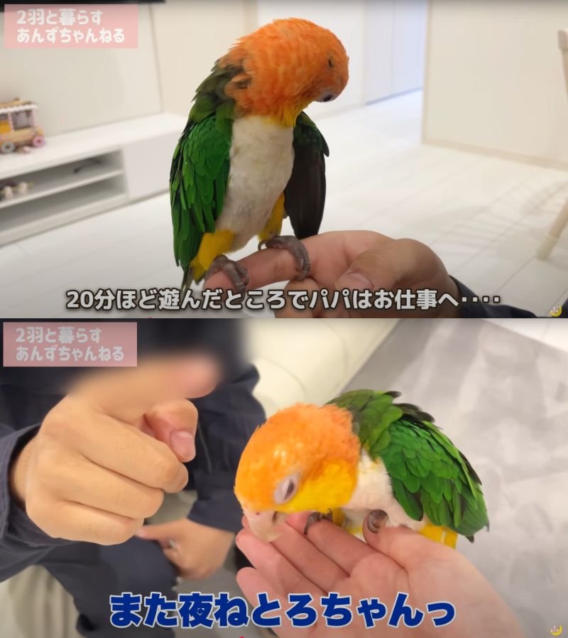 1. 【会いたくて震えるインコ】大好きなパパがお仕事へ。ショックで震えるインコ