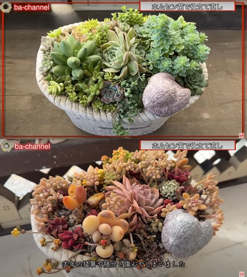 @ba-channelさんが育てている多肉植物の寄せ植え鉢も、その暑さでやられてしまったものがあるようです。