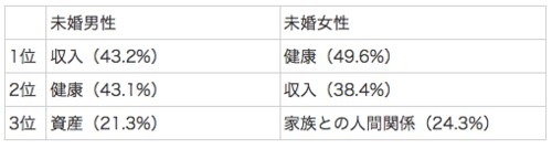 未婚男女の幸福度を左右するのは?