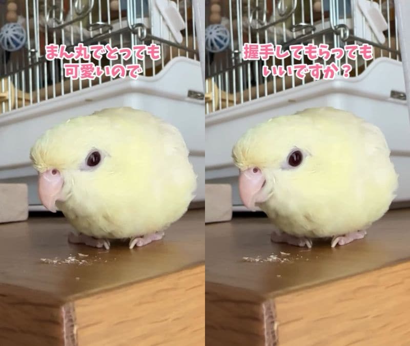 サザナミインコのぽてちゃんが、飼い主さんと握手を交わす様子の動画が話題です。投稿したのは「daiinkoteikoku_soraoto」さん。