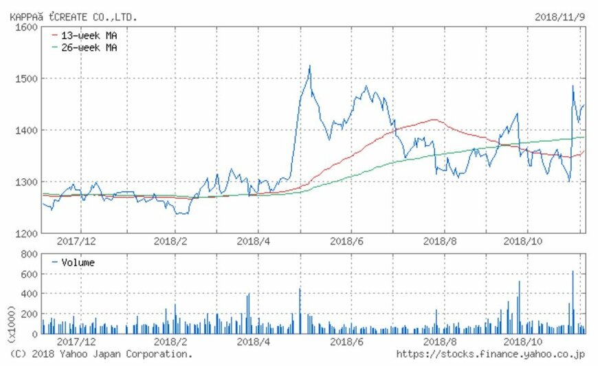 同社の株価は1,300円が節目価格となっており、2018年は夏以降1,300円台で上下していました。