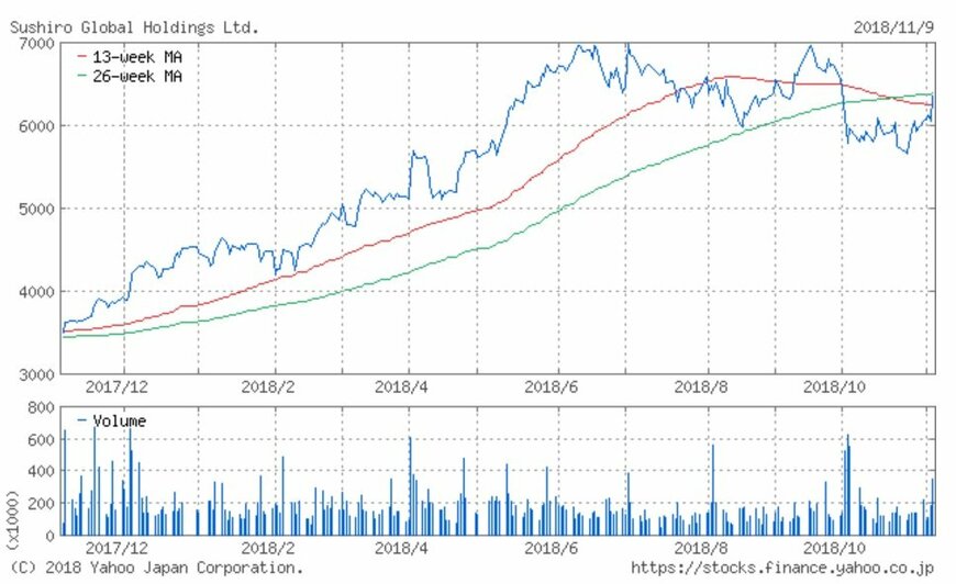 シリーズでお伝えしている「注目小売店月次実績」。今回は回転寿司チェーン店「スシロー」を運営するスシローグローバルHD(3563)の、2018年10月の月次動向及び過去実績、また過去1年の株価動向について振り返ってみましょう。