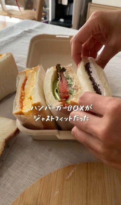 なんと、100均のハンバーガーBOXがぴったりだったとのこと!これならかさばらず、ピクニックの帰りも荷物が軽くなって嬉しいですね。