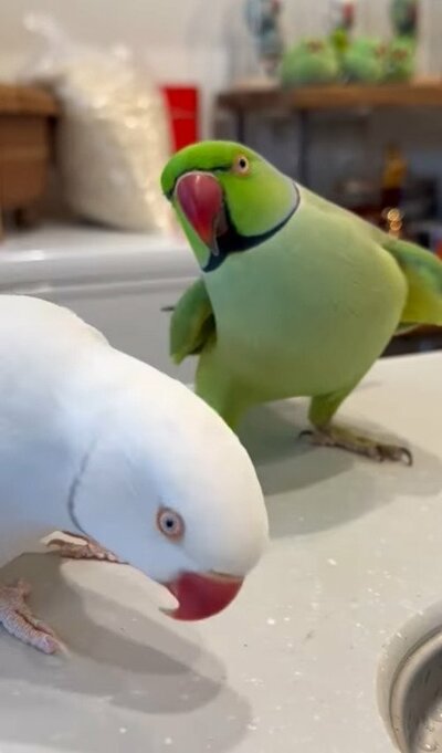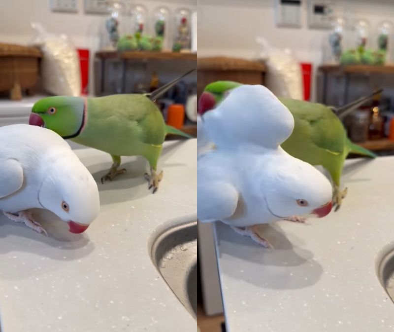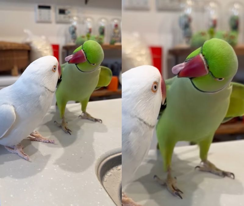 2. 【お友だちにペロリしちゃうインコ】頭をポチッ!すると...「かわかわかわ...」