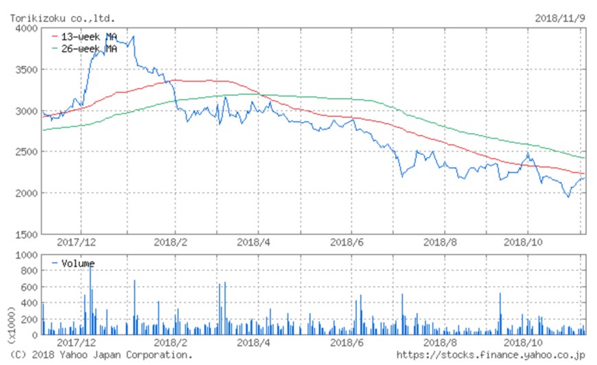 シリーズでお伝えしている「注目小売店月次実績」。今回は焼鳥チェーン店「鳥貴族」を運営する鳥貴族(3193)の、2018年10月の月次動向及び過去実績、また過去1年の株価動向について振り返ってみましょう。