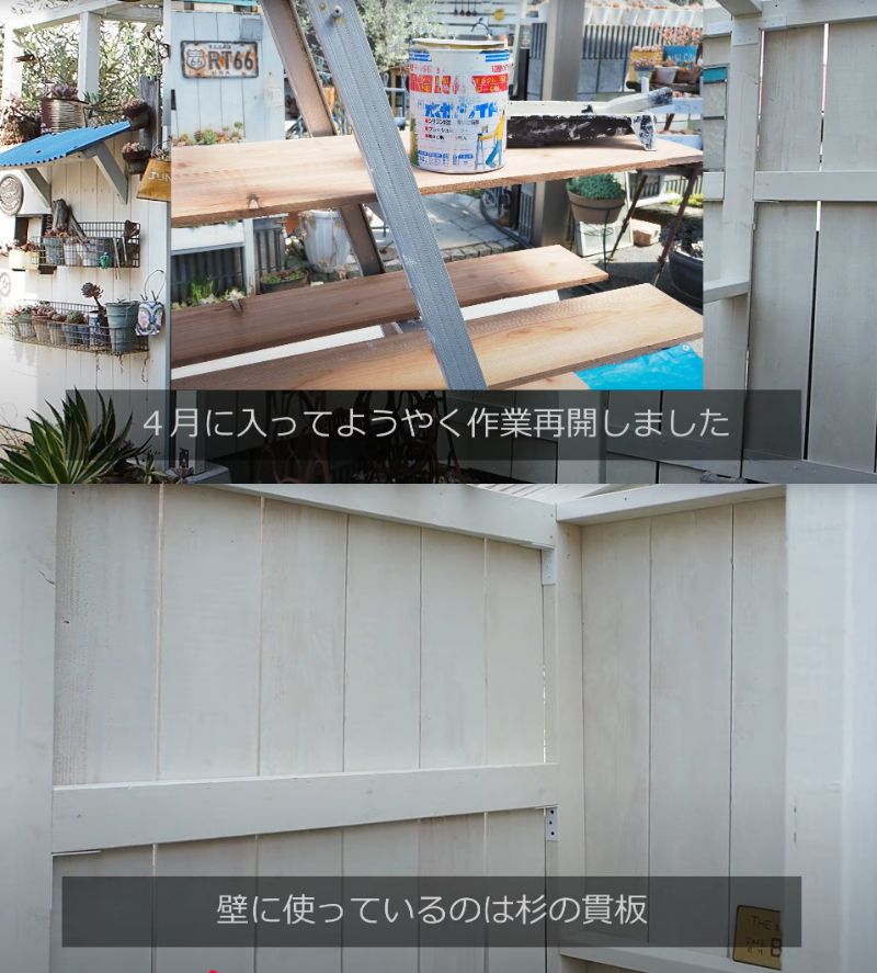2. 【多肉植物の棚をDIY】春になって作業再開!壁は杉の貫板を利用