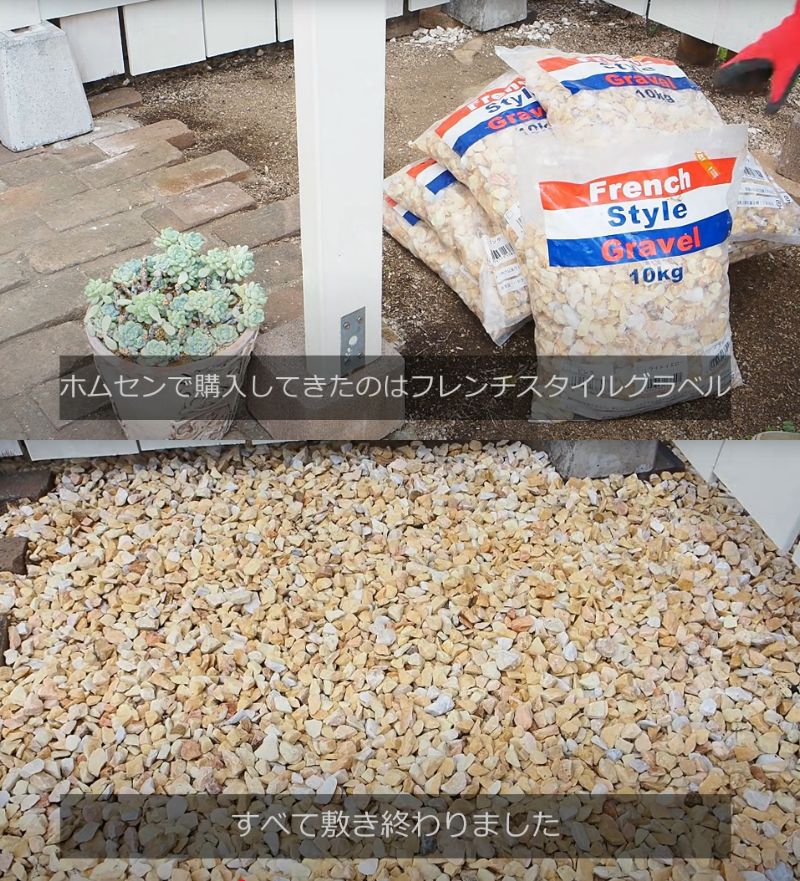 雑草対策に敷くのは、ホームセンターで購入された「フレンチスタイルグラベル」。