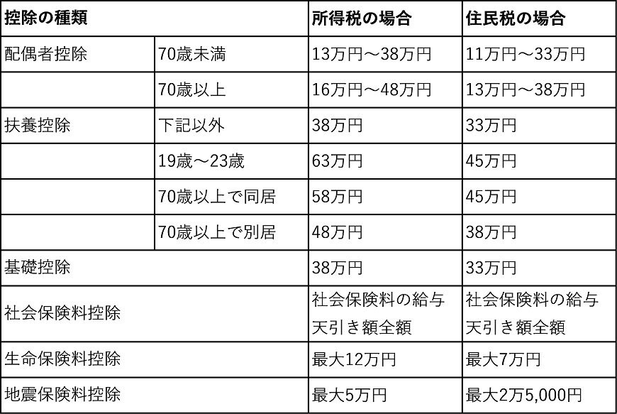 そして、もう一つの違いが所得控除の金額です。所得控除については、全般的に住民税のほうが少なくなっています。たとえば、メジャーな所得控除である扶養控除。所得税では基本的に38万円であるのに対して、住民税では33万円です。このように、総じて住民税の所得控除は、所得税に比べて低く設定されています。