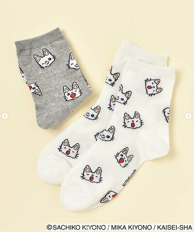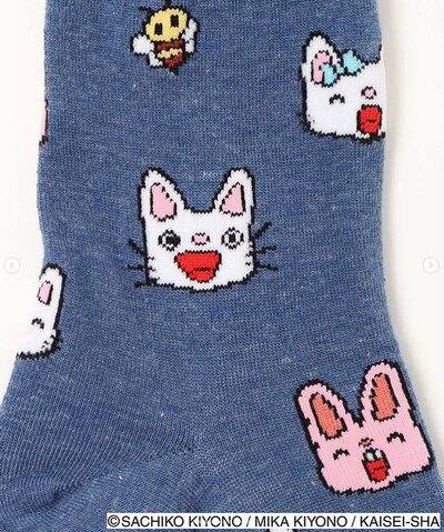 「ノンタン」の様々な表情を見ることができるキュートな「ノンタン総柄ロークルーソックス」と、「ノンタン」のお友だち、うさぎさんや、タータン、はちさんがちりばめられたポップなデザインの「ノンタンおともだち総柄ロークルーソックス」です。