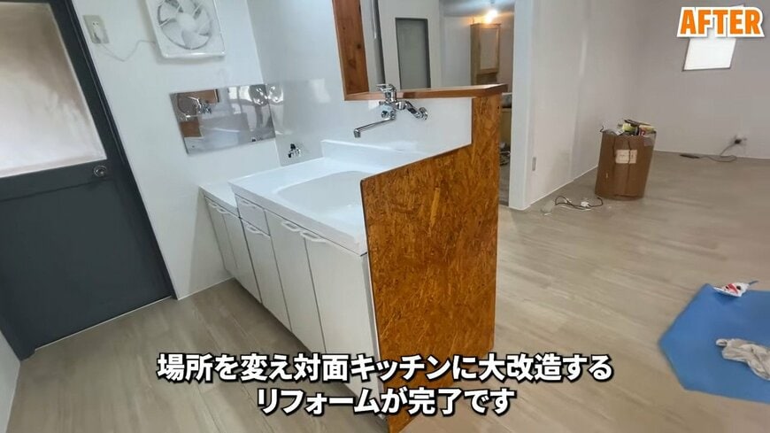 4. 【元ごみ屋敷!45万円築50年中古戸建DIY】劇的ビフォーアフター!ウッドを使ったカウンターがアクセントの真っ白キッチンに!