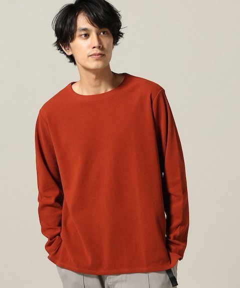 ボーダーのように等間隔で編み目を変えた『CURLY』のワッフル素材のロンT。生地特有の型崩れのしやすさを、ジャカード編みを採用することで克服した一枚です。